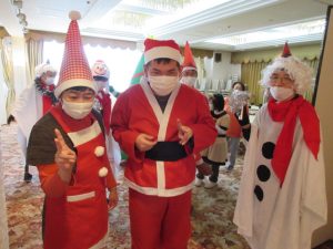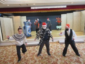 令和7年12月19日  大町協働ビルでクリスマス忘年会。仮装やクイズ大会を行い、最後はカラオケ&ダンスで盛り上がりました!