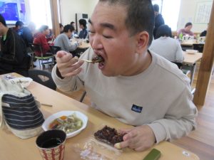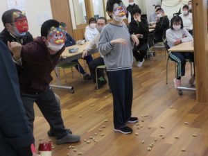 令和8年2月:節分 いなほの鬼を追い払いました。お昼は、けんちん汁とおはぎをたべました!